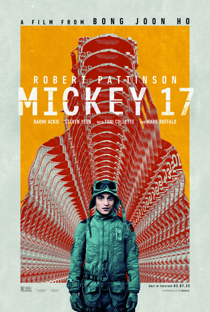 MICKEY 17 is an upcoming science fiction black comedy film produced, written, and directed by Bong Joon-ho. It is based on the 2022 novel Mickey7 by Edward Ashton. The film stars Robert Pattinson, Naomi Ackie, Steven Yeun, Toni Collette, and Mark Ruffalo.