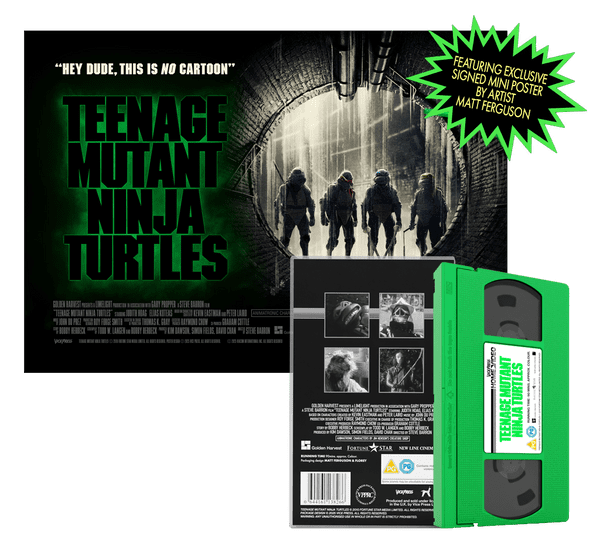 Last year marked the 35th anniversary of the live action Teenage Mutant Ninja Turtles movie, and after our screening at last year’s Open House, we continue the celebrations with two new releases, the original theatrical poster and the film on VHS from Vice Press Home Video!